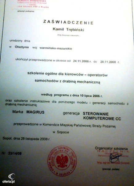 Szkolenie specjalistyczne kierowców operatorów samochodów z drabiną mechaniczną Przydatne przy pracach w koszu, w koronie drzew.
