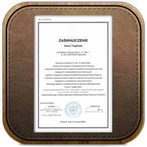 Drwal – operator pilarki Zaświadczenie o ukończeniu kursu "Drwal - operator pilarki" po ukończeniu, którego można samodzielnie wycinać drzewa bez ograniczeń co do wielkości.